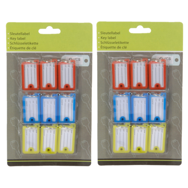 18x stuks gekleurde sleutellabels rood, blauw en geel