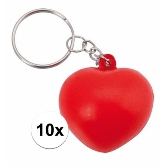 10x Stressbal sleutelhanger hartje 3,6 cm