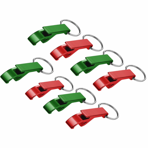 10x stuks Flessen openers met sleutelhanger groen en rood 6 cm