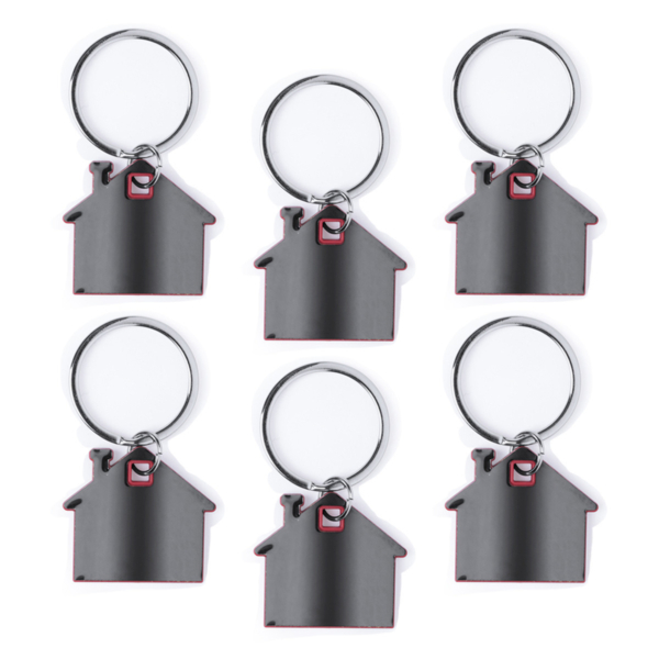 Sleutelhanger met klein huisje – 6x – rood/grijs – metaal – 4 x 3.8 cm – eigen huis/nieuw huis