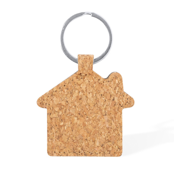 Sleutelhanger met huisje – kurk/metaal – 5 x 6 cm – eigen huis/nieuw huis