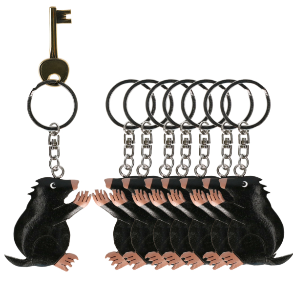 Houten mol sleutelhanger – 10x – 5 cm – Dieren cadeau artikelen – Mollen/Molletjes