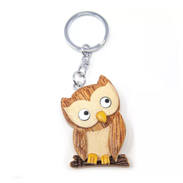 Sleutelhanger houten uil – 5 cm – Uilen dieren sleutelhangers – Speelgoed voor kinderen