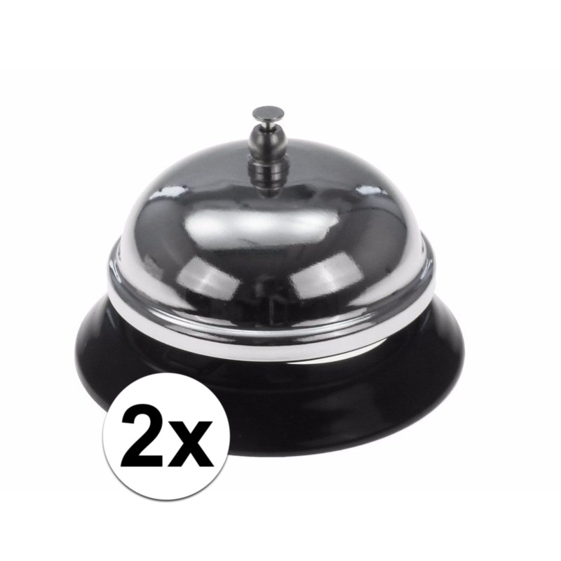 2x ronde receptie bel van 9 cm. De receptiebel heeft een hoogte van ca. 6 cm, een diameter van 9 cm en is gemaakt van roestvrij staal.