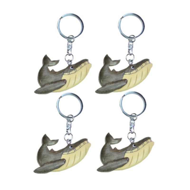 4x stuks houten bultrug walvis sleutelhanger