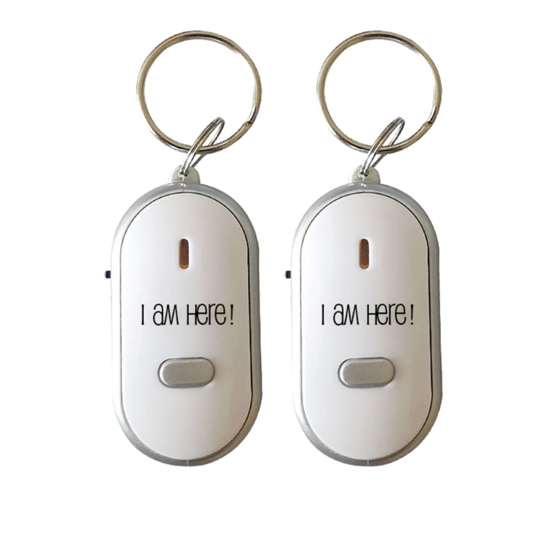 2x bellatio Design Terugfluitende Sleutelhanger – wit – kunststof – 5 meter – sleutels terugvinden. Met deze terugfluitende sleutelhanger van Bellatio Design vind je je sleutels altijd snel terug. Zodra je fluit, reageert de sleutelhanger met een hoorbaar geluidssignaal, zodat je direct weet waar je sleutelbos ligt. Het bereik is circa 5 meter. Dankzij het compacte ontwerp past de sleutelhanger moeiteloos aan elke sleutelbos. De batterij is inbegrepen, dus je kunt het product direct gebruiken. Ideaal voor thuis, onderweg of op het werk. Een praktische en slimme oplossing voor iedereen die zijn sleutels weleens kwijt is.
