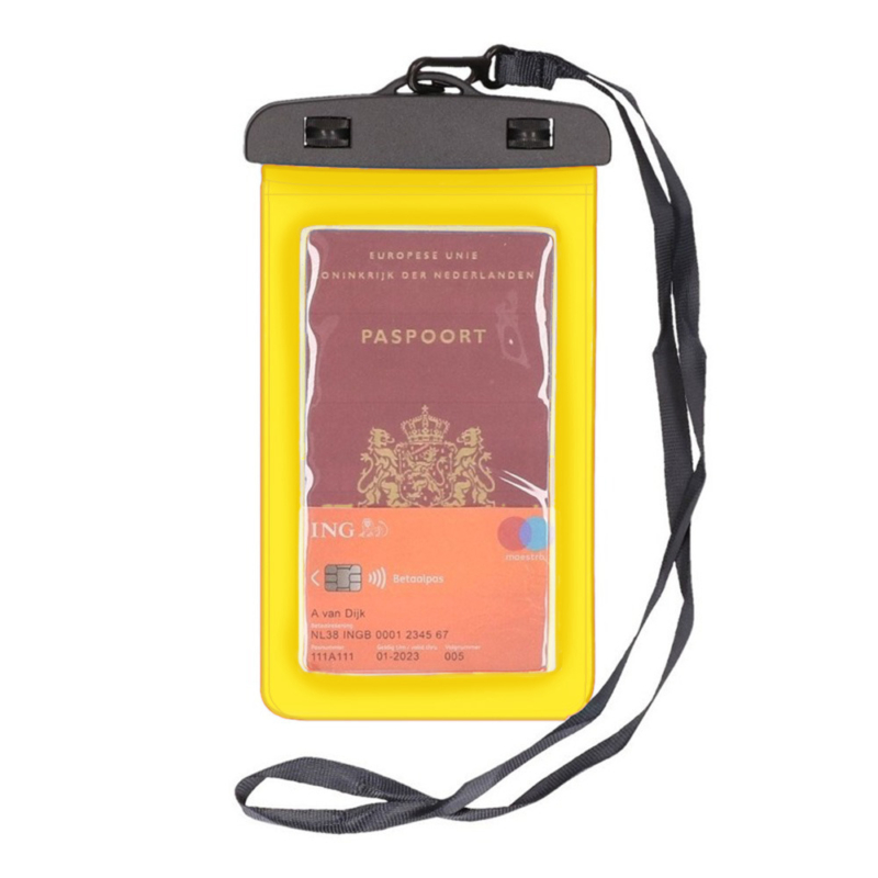Geel waterdicht documententasje / waardevolle spullenhoesje voor al uw belangrijke documenten. Handig hoesje om uw waardevolle spullen droog of stofvrij te houden. Test de waterdichtheid voor gebruik, bijvoorbeeld met een stuk papier.